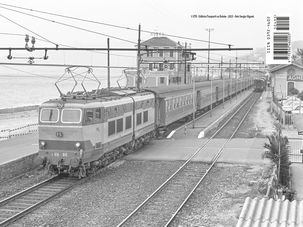 Incrocio a Borgio Verezzi tra il Rapido 937 Ventimiglia–Torino Porta Nuova affidato alla E.656.043 e il Locale 1870 Savona–Albenga con carrozze dirette da Torino, il 19 aprile 1981 (foto S. Viganò).