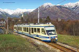 Elettrotreno ABe 4/6 61 “Santa Maria Maggiore” della SSIF in servizio lungo la ferrovia Vigezzina come D61 Domodossola–Locarno, ritratto nei pressi di Trontano il 23 marzo 2018 (foto F. Sozzi).